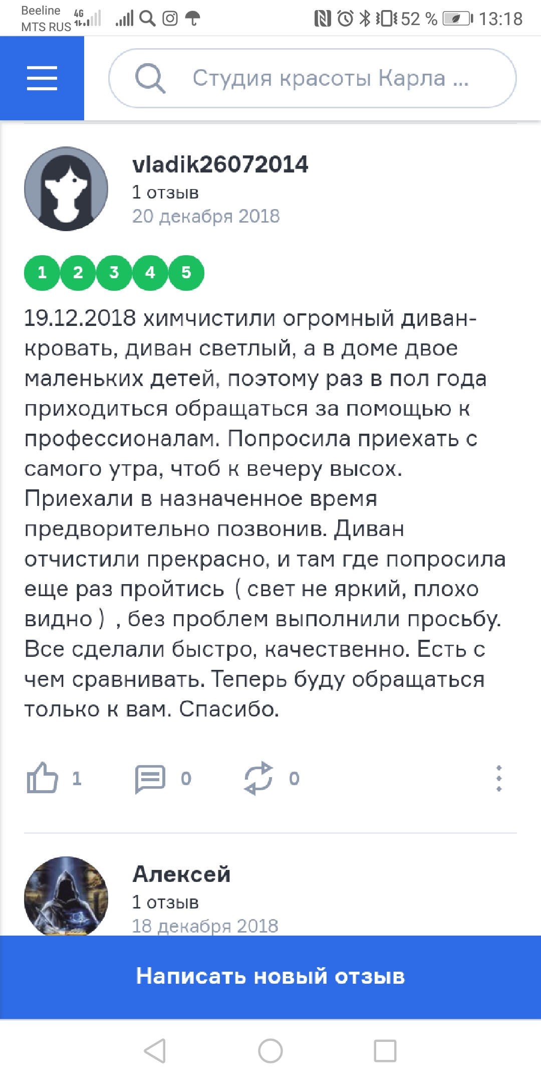 19.12.2018 химчистили огромный диван- кровать, диван светлый, а в доме двое маленьких детей, поэтому раз в пол года приходиться обращаться за помощью к профессионалам. Попросила приехать с самого утра.