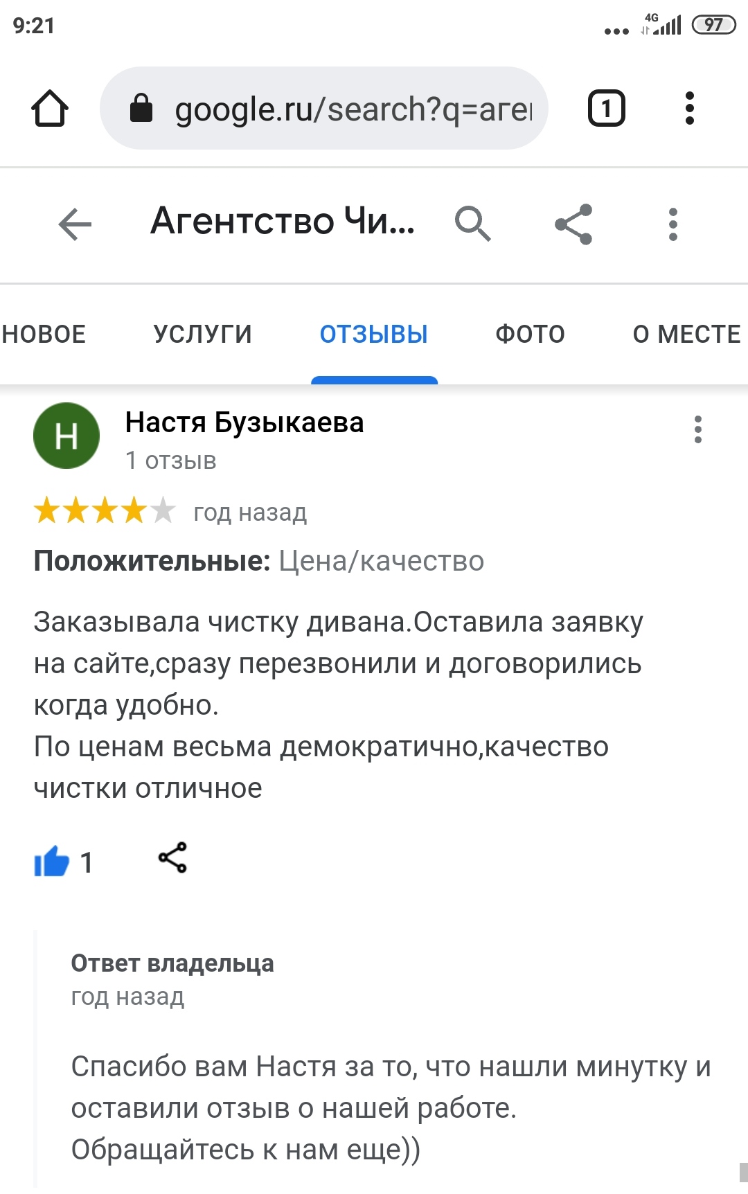 Заказывала чистку дивана.Оставила заявку на сайте,сразу перезвонили и договорились когда удобно.