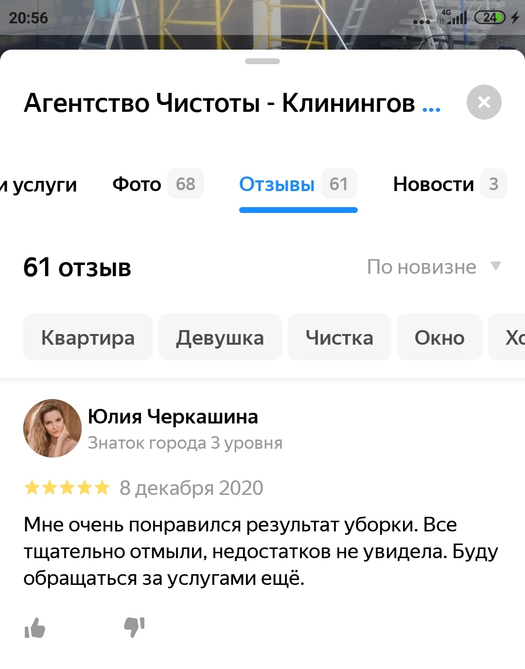 Мне очень понравился результат уборки. Все тщательно отмыли, недостатков не увидела. Буду обращаться за услугами ещё.