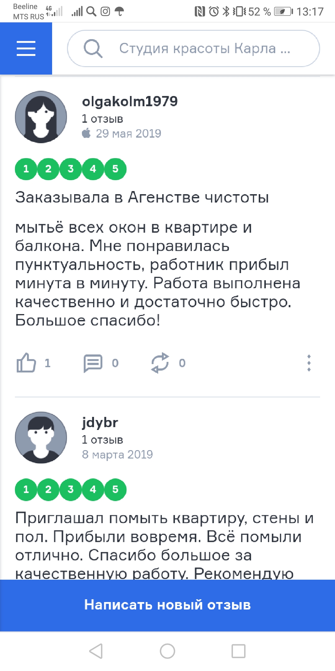 Заказывала в Агенстве чистоты мытьё всех окон в квартире и балкона. Мне понравилась пунктуальность, работник прибыл минута в минуту. Работа выполнена качественно и достаточно быстро.