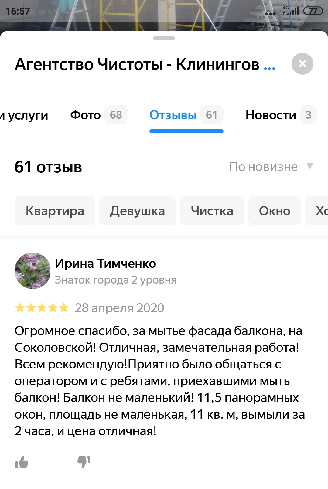 Огромное спасибо, за мытье фасада балкона, на Соколовской! Отличная, замечательная работа! Всем рекомендую!Приятно было общаться с оператором и с ребятами, приехавшими мыть балкон! Балкон не маленький!