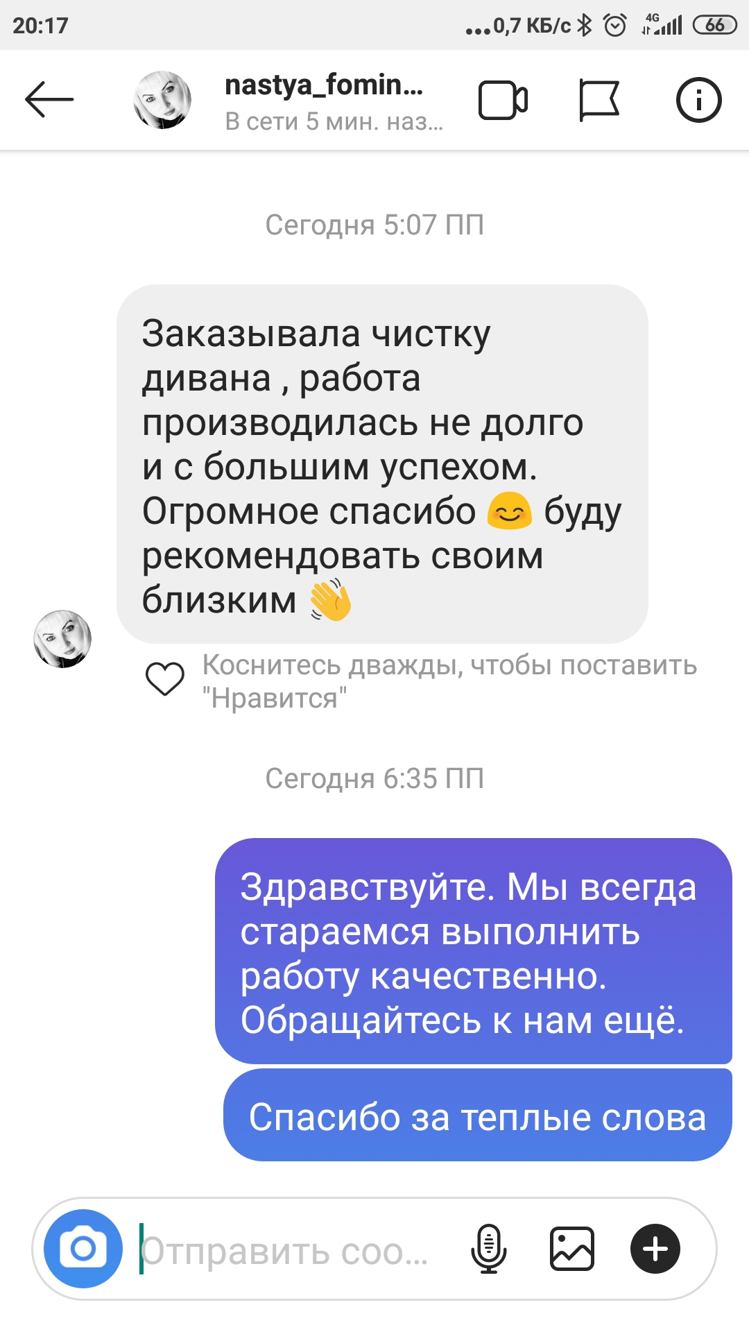 Заказывала чистку дивана, работа производилась не долго и с большим успехом.