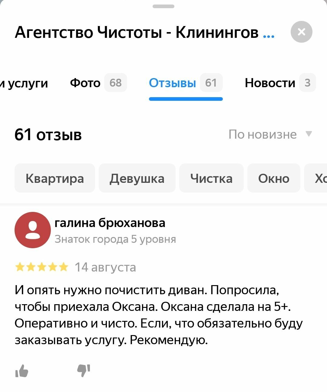 И опять нужно почистить диван. Попросила, чтобы приехала Оксана. Оксана сделала на 5+. Оперативно и чисто. Если, что обязательно буду заказывать услугу. Рекомендую