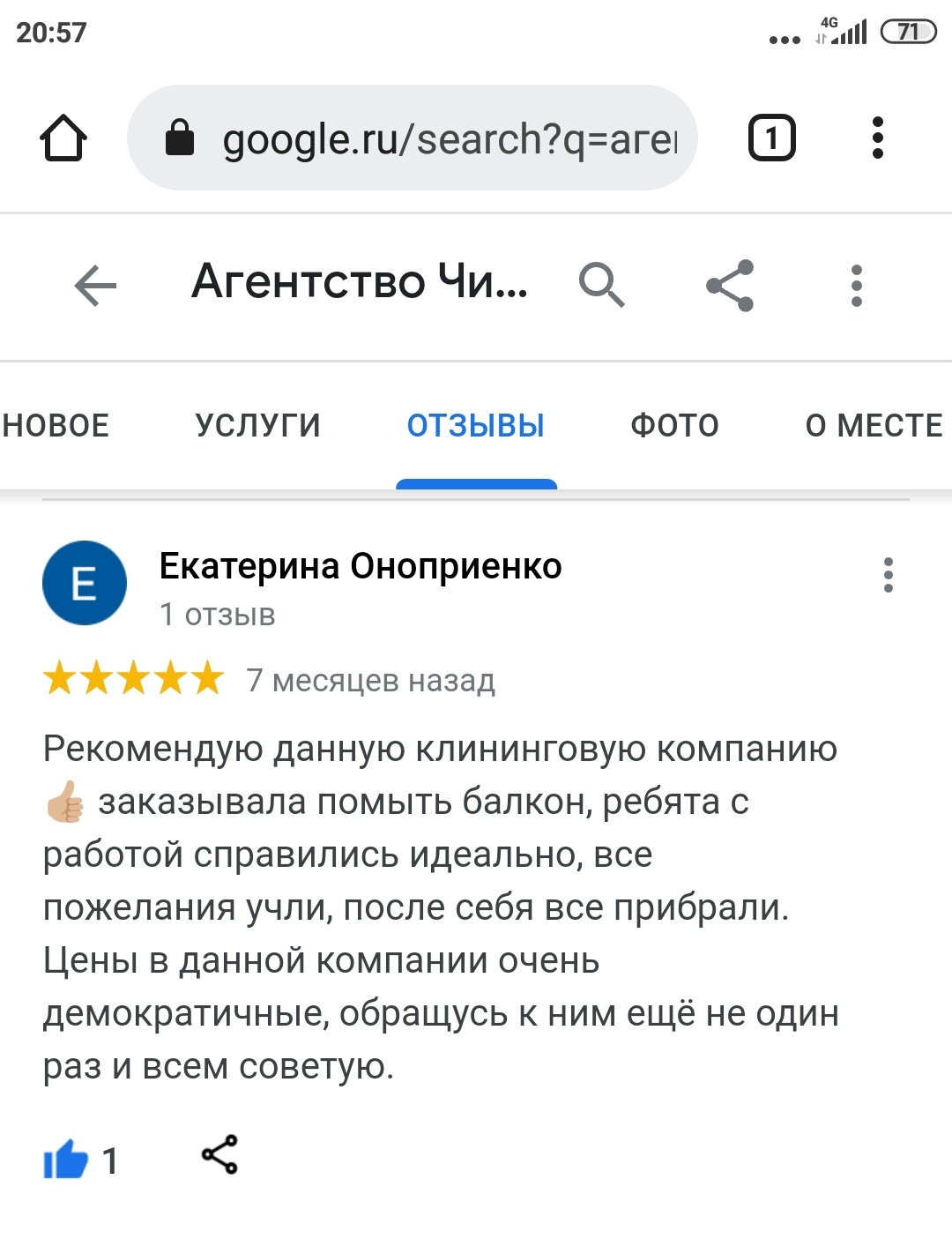 Рекомендую данную клининговую компанию 4 заказывала помыть балкон, ребята с работой справились идеально, все пожелания учли, после себя все прибрали. Цены в данной компании очень демократичные, обращусь к ним ещё не один раз и всем советую.