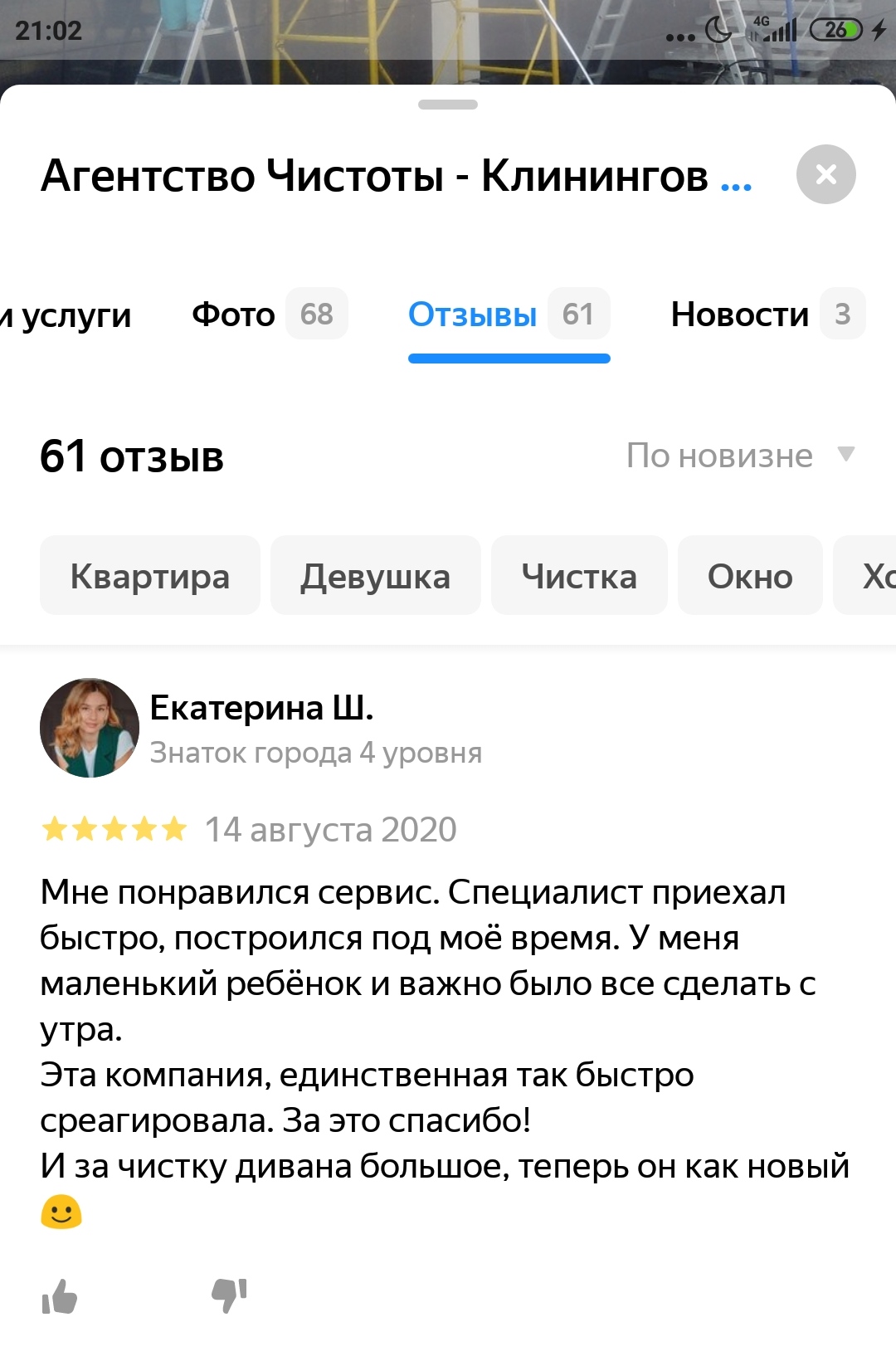 Мне понравился сервис. Специалист приехал быстро, построился под моё время. У меня маленький ребёнок и важно было все сделать с утра.Эта компания, единственная так быстро среагировала. За это спасибо!И за чистку дивана большое, теперь он как новый